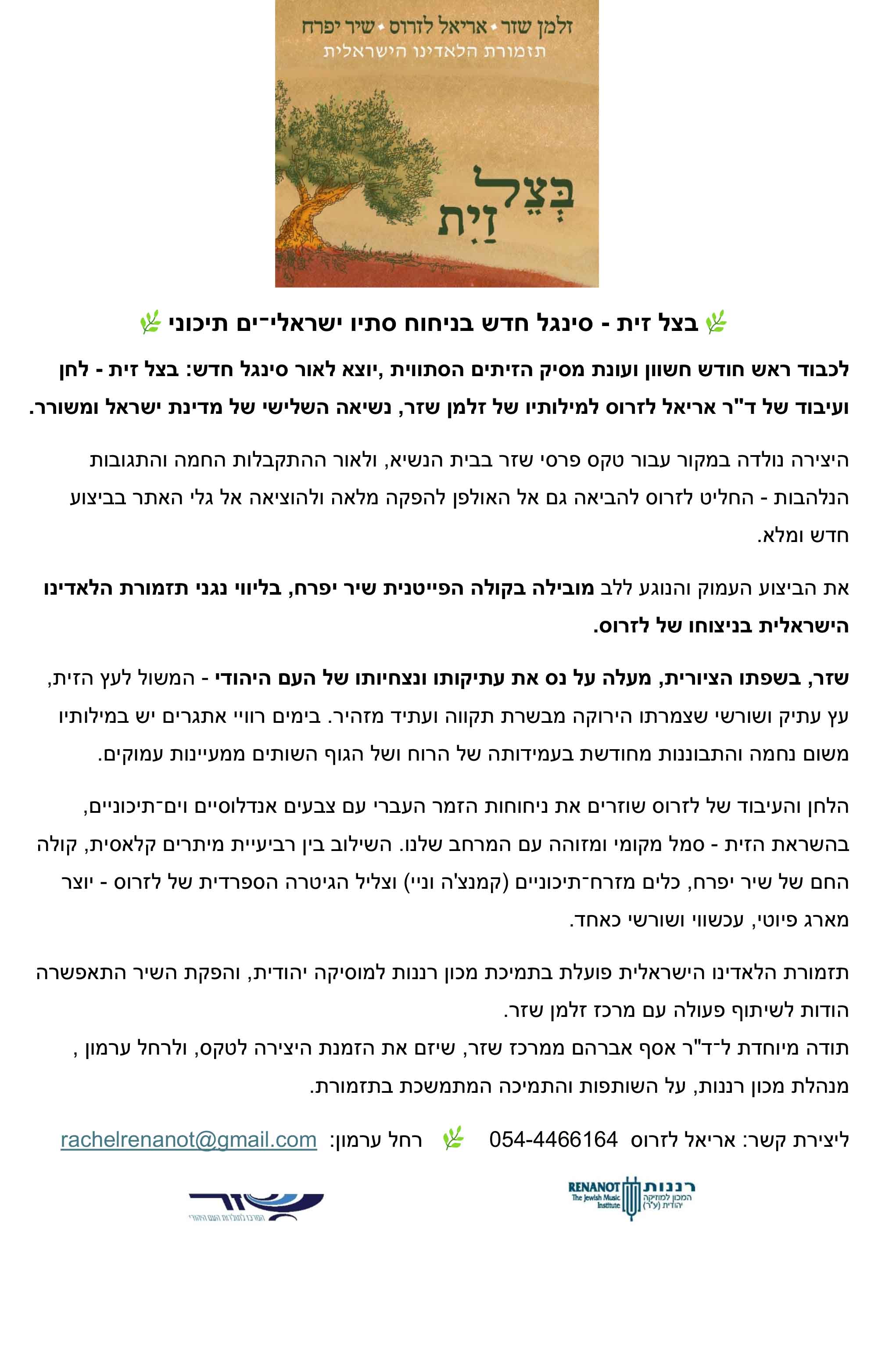 כָּל בַּד רְנָנָה.