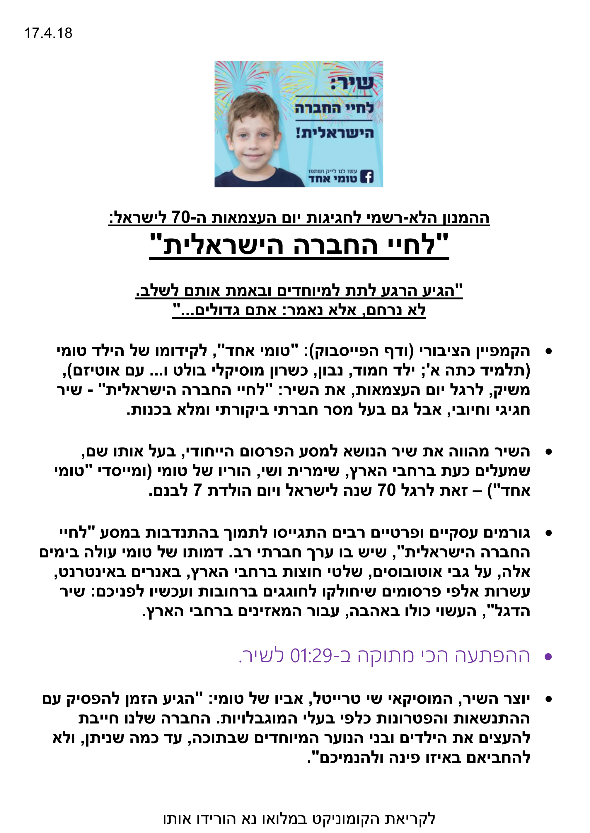 לְחַיֵּי הַחֶבְרָה הַיִּשְׂרְאֵלִית!