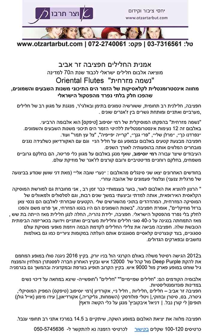 חפציבה זר אביב – חלילים| חליליות| חליל ניי|אקורדיון
