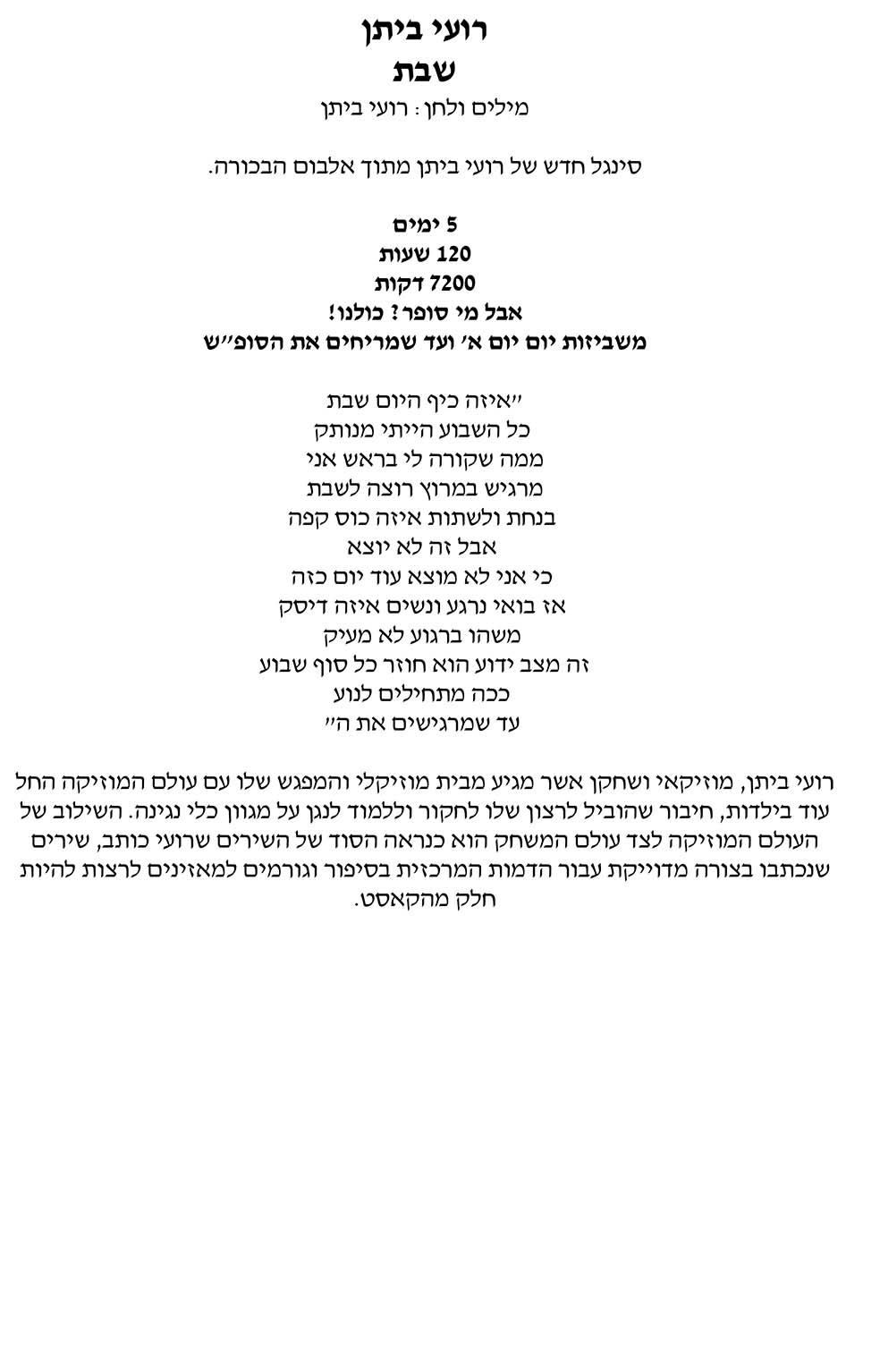 רועי ביתן - שבת