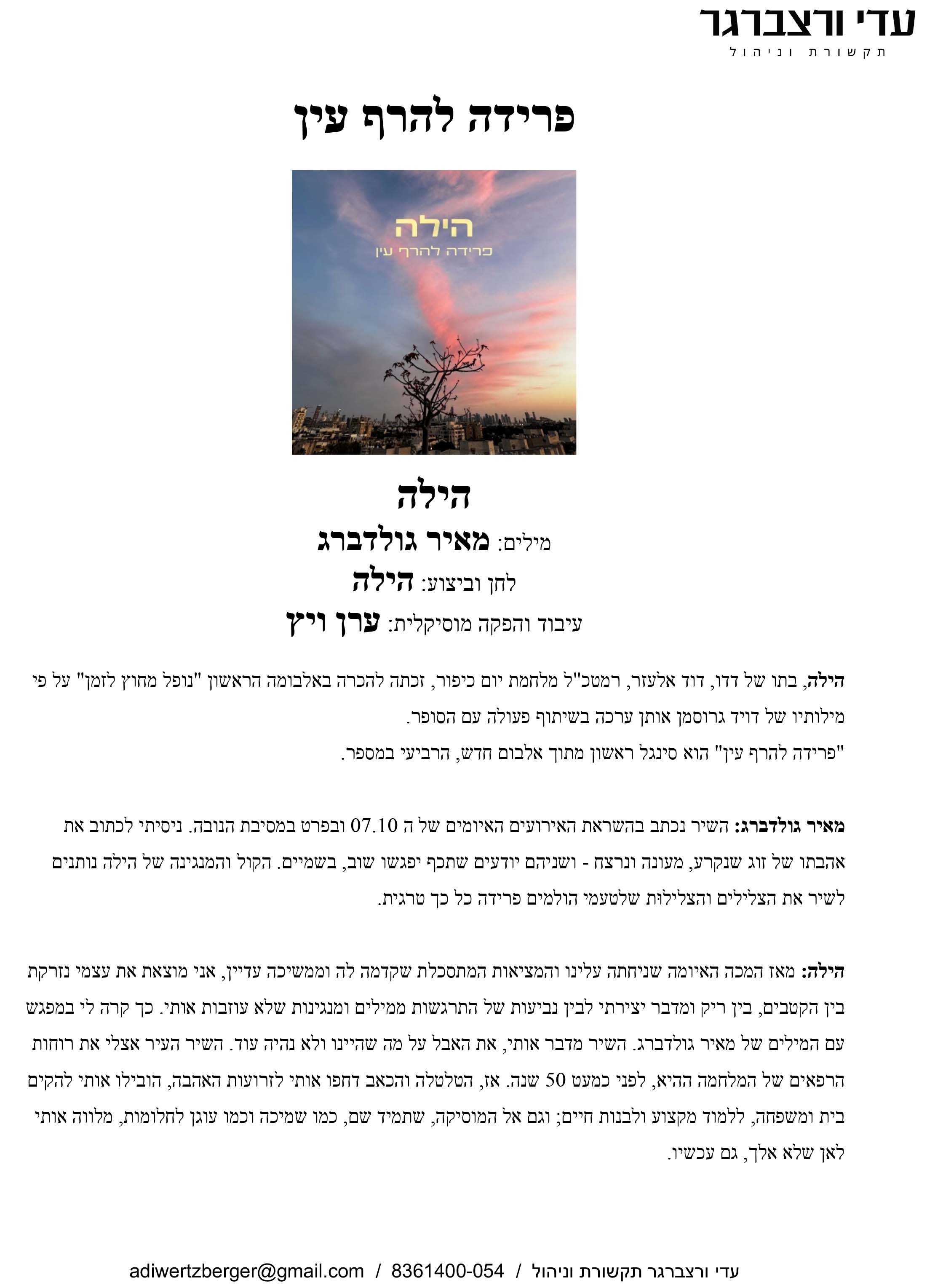 יחסי ציבור: עדי ורצברגר תקשורת וניהול / 054-8361400 / adiwertzberger@gmail.com