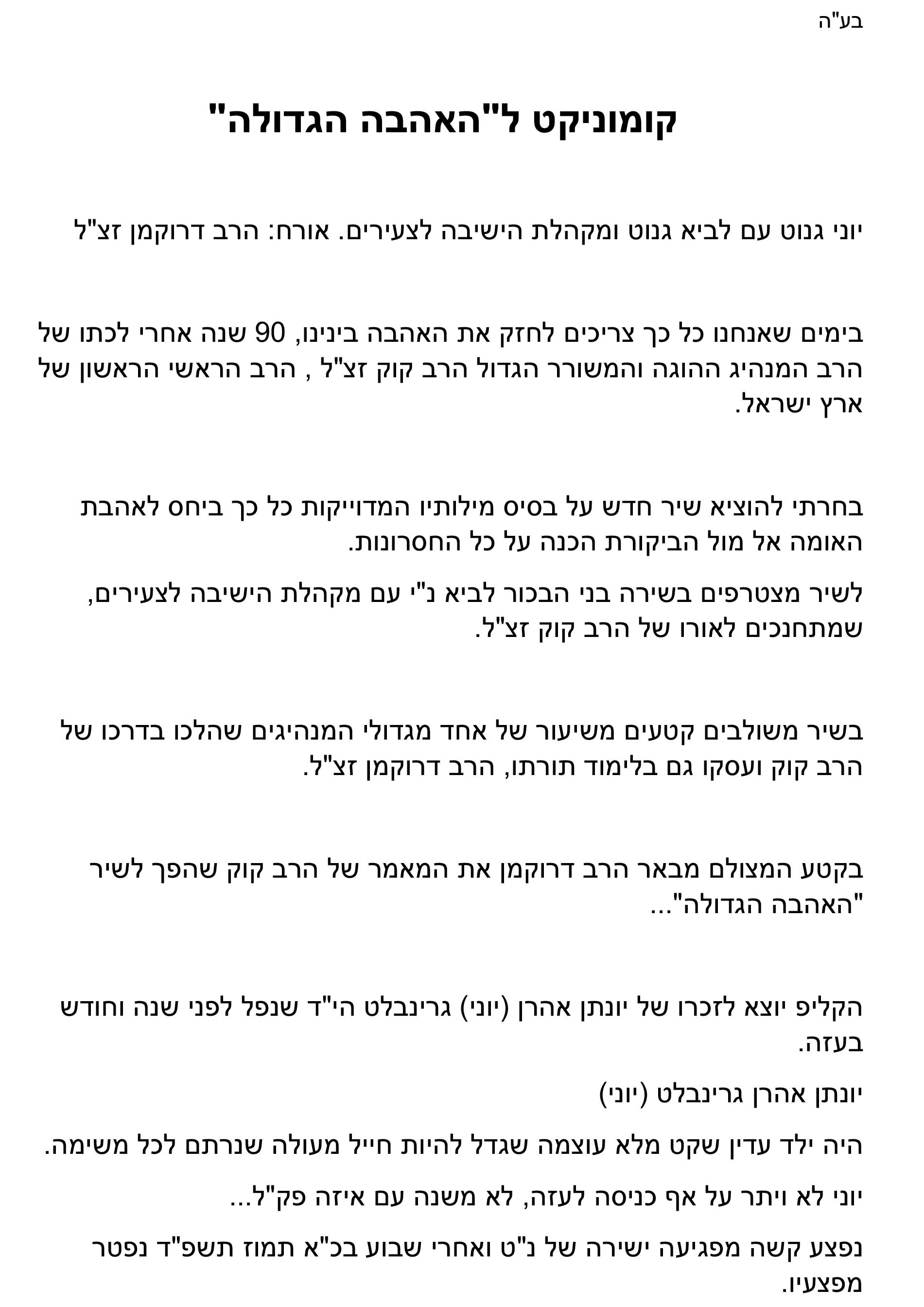 שירה: יוני גנוט, לביא גנוט ומקהלת הישיבה לצעירים