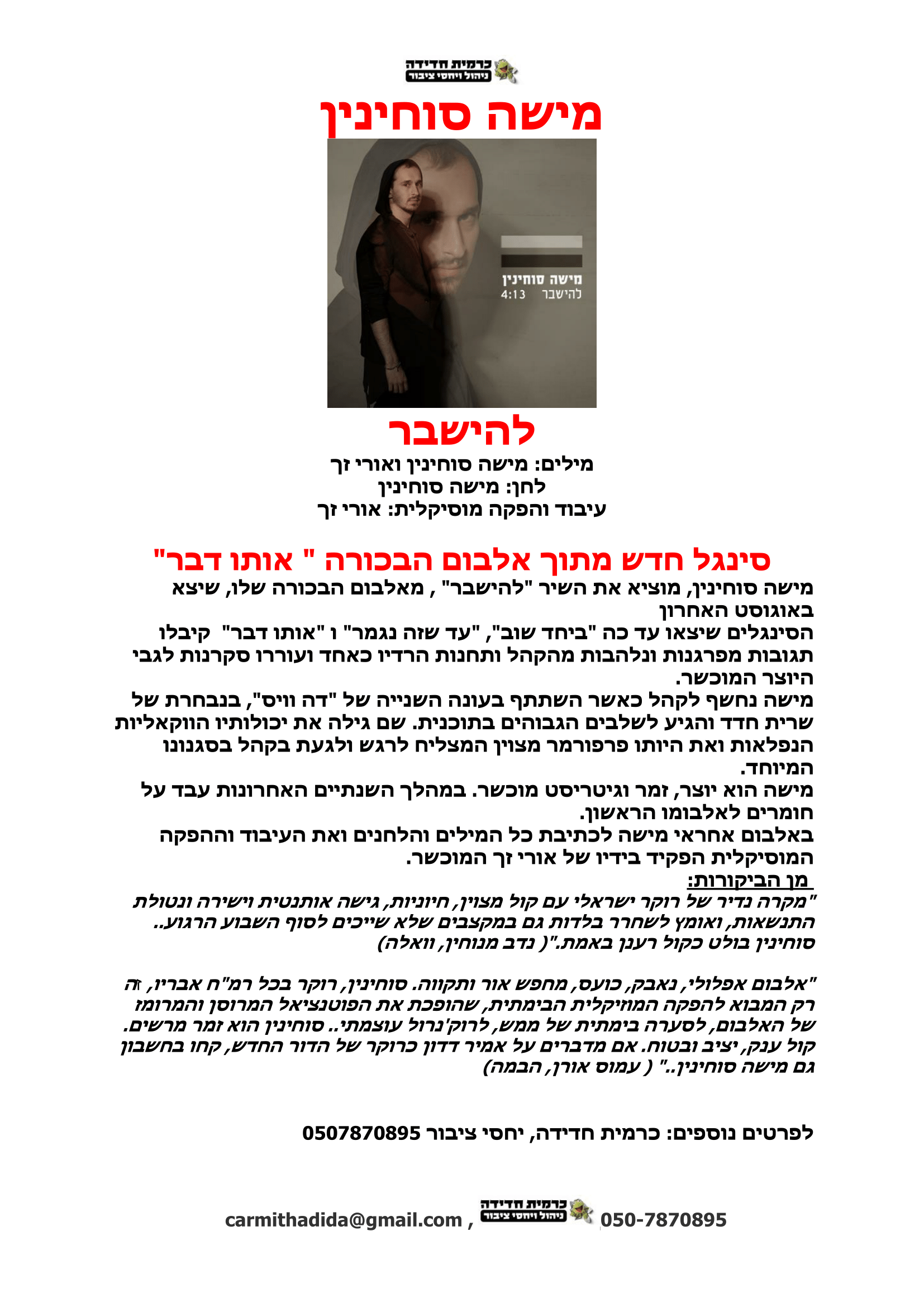 יח"צ: כרמית חדידה: 050-7870895