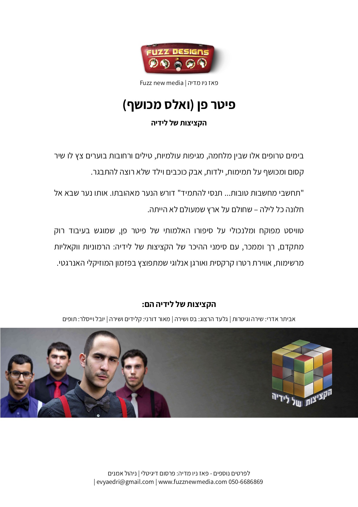 להזמנת הופעות – פאז ניו מדיה: 050-6686869 | www.fuzznewmedia.com | evyaedri@gmail.com