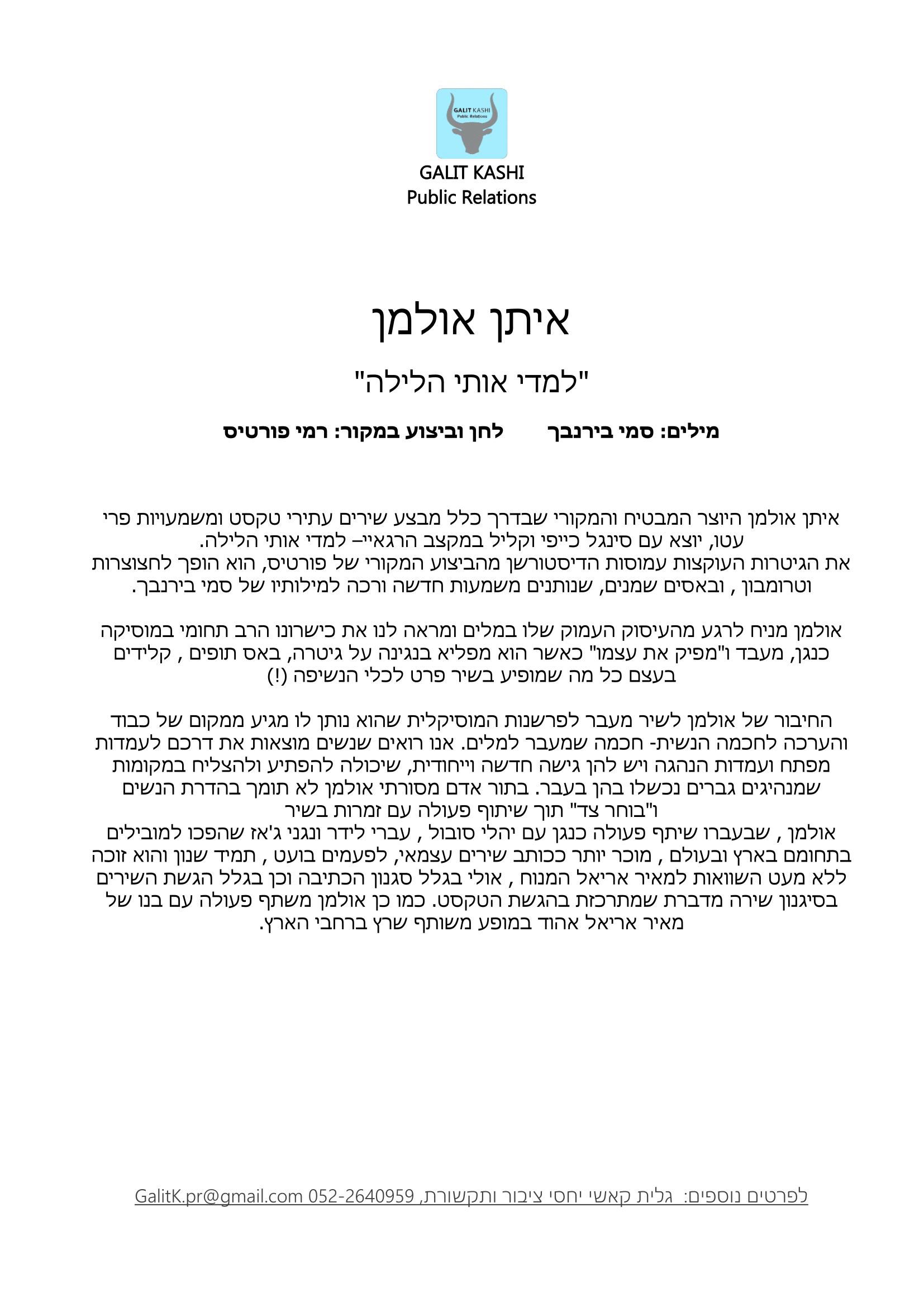 יח"צ גלית קאשי יחסי ציבור 052-2640959 galitK.pr@gmail.com