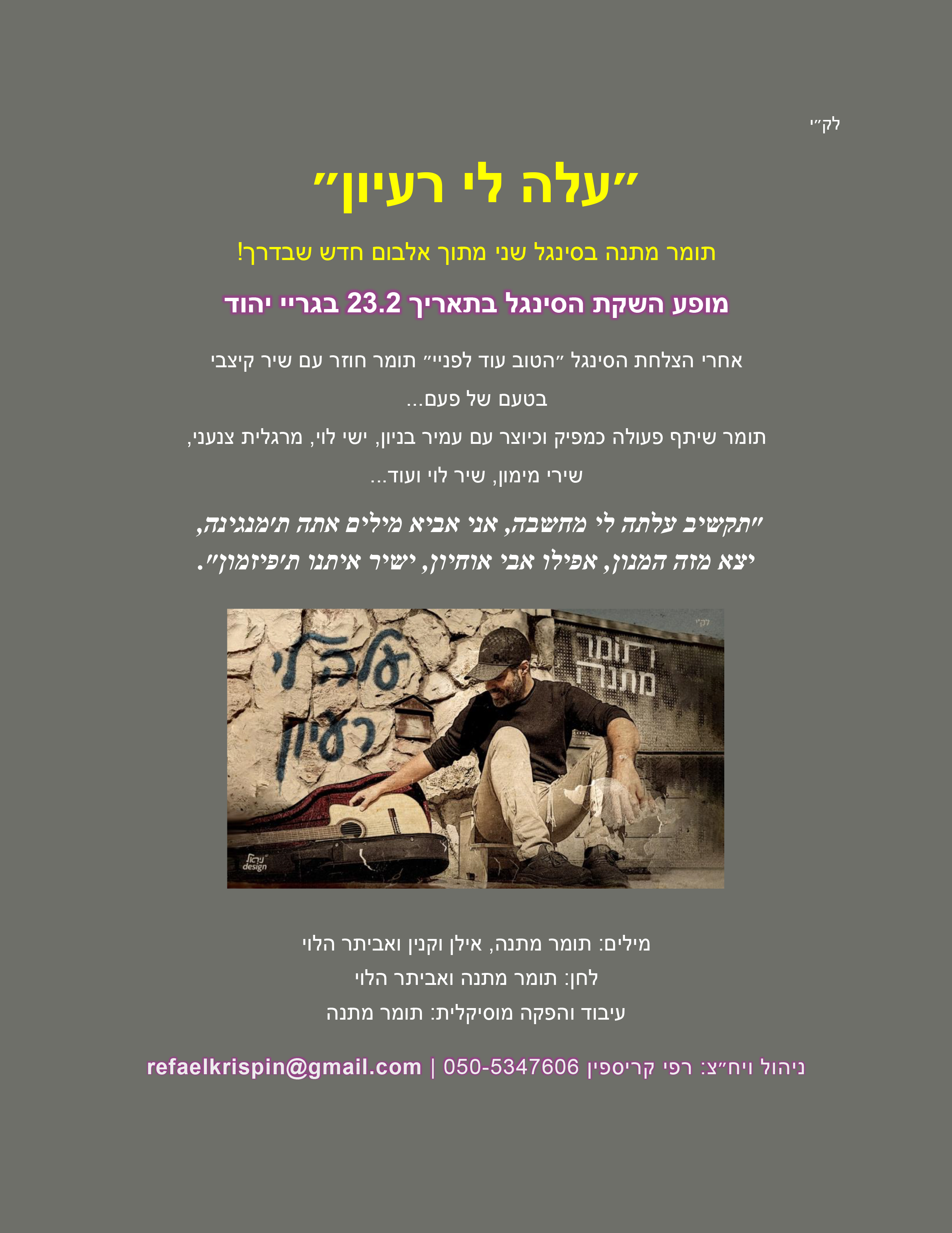ניהול ויח״צ: רפי קריספין 050-5347606 | refaelkrispin@gmail.com