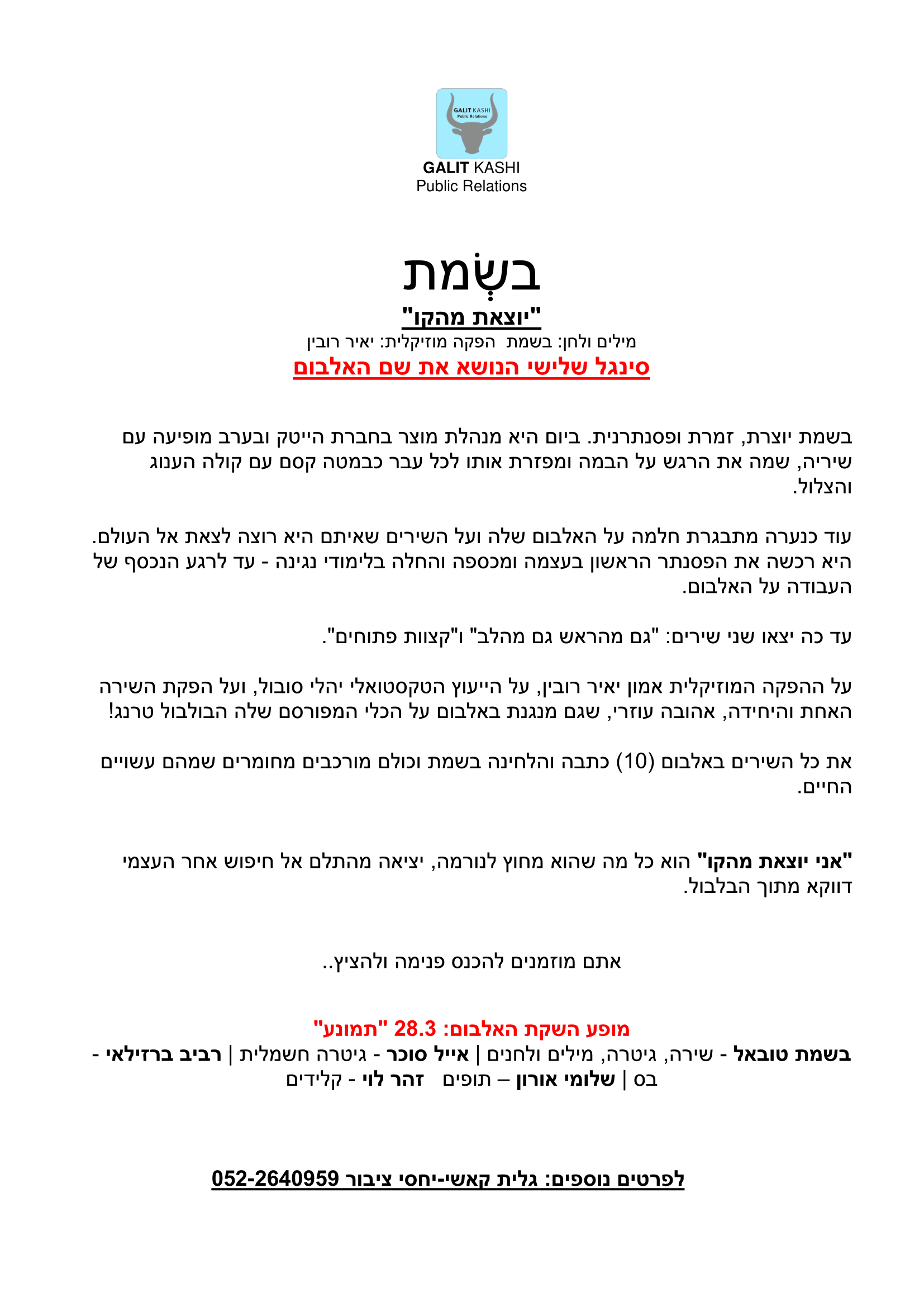 יחסי ציבור: גלית קאשי 0522640959