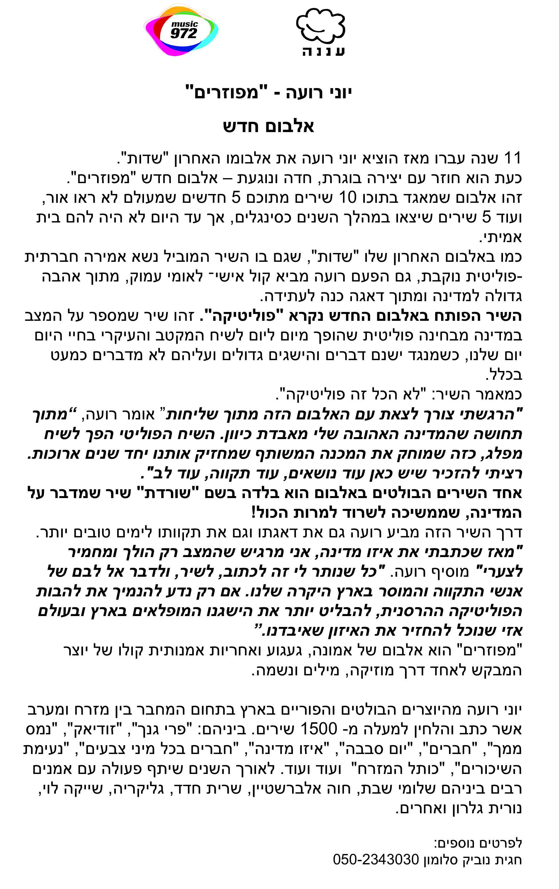 יחסי ציבור: חגית נוביק סלומון & ירון כהן 050-2343030