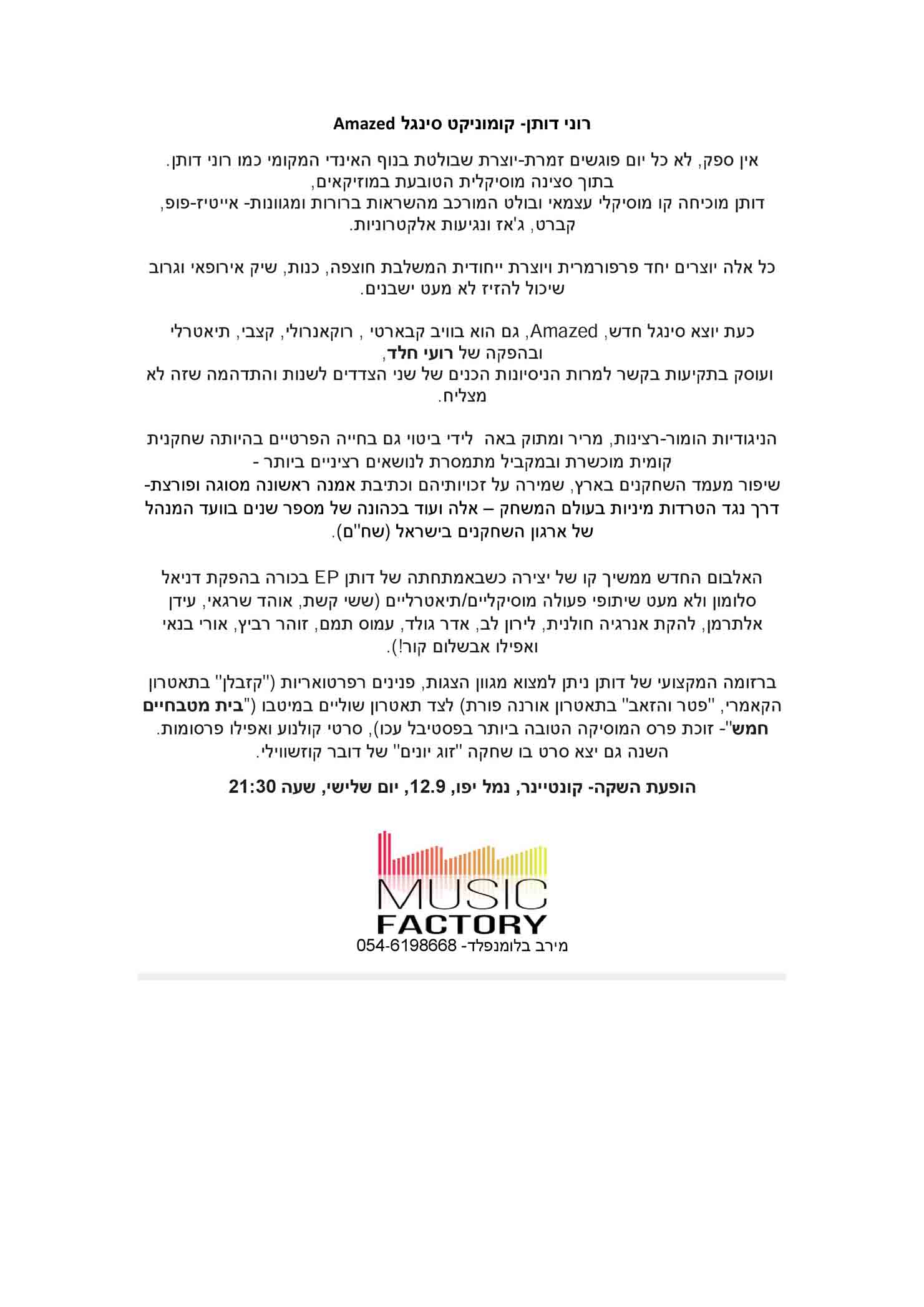יחסי ציבור: מרב בלומנפלד "מיוזיק פקטורי" 054-6198668